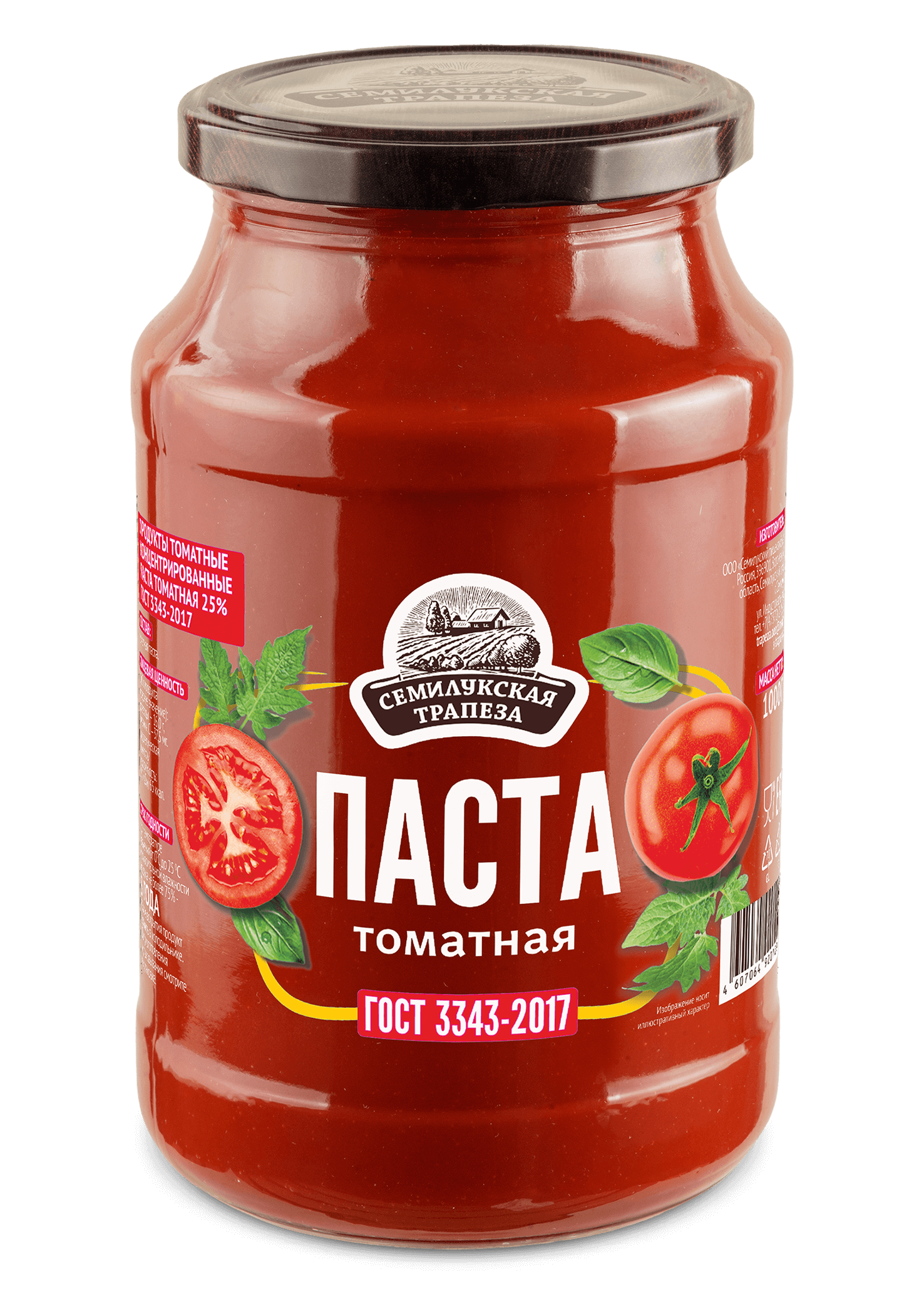 Приготовленная из свежих отобранных томатов, имеющая приятный традиционный вкус и оптимальную густоту Томатная паста ГОСТ «Семилукская трапеза» содержит множество витаминов и полезных веществ. Прекрасно подходит для создания соусов, заправок для супов, гарниров и жаркого.