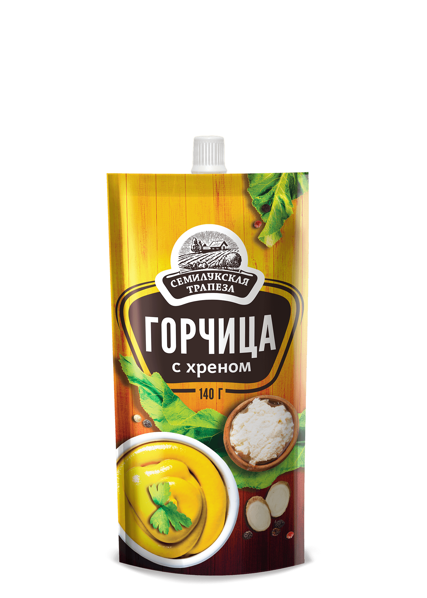 Ароматная приправа Горчица с хреном «Семилукская Трапеза», обладающая жгучим вкусом, используется как дополнение к мясным блюдам, а также при их приготовлении. Прекрасно сочетает в себе вкусовые и ароматические свойства семян горчицы и хрена благодаря тщательному отбору высококачественных компонентов.