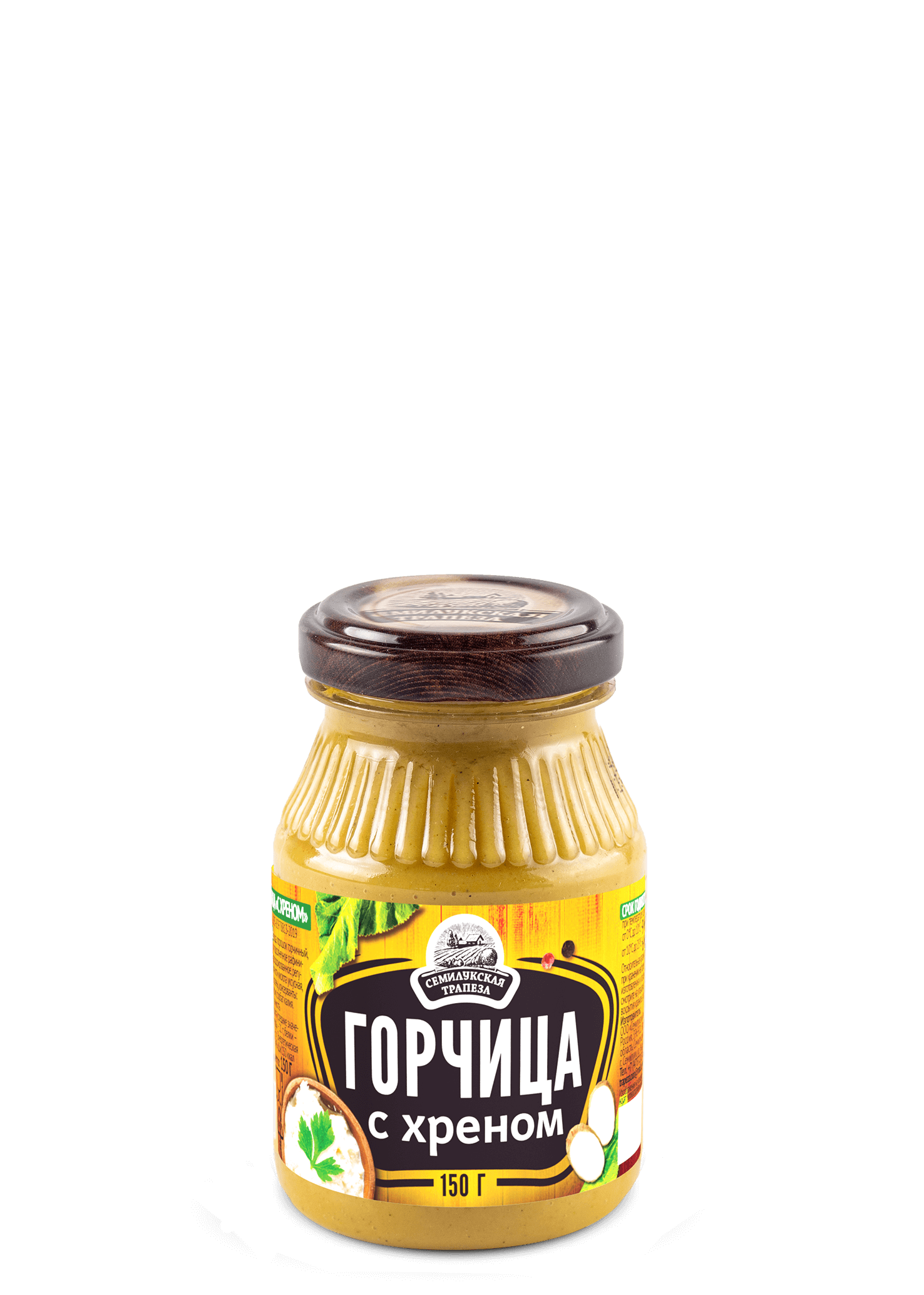 Ароматная приправа Горчица с хреном «Семилукская Трапеза», обладающая жгучим вкусом, используется как дополнение к мясным блюдам, а также при их приготовлении. Прекрасно сочетает в себе вкусовые и ароматические свойства семян горчицы и хрена благодаря тщательному отбору высококачественных компонентов.
