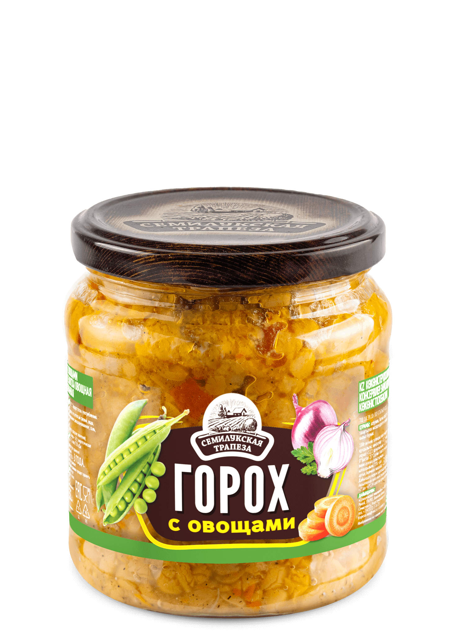 Полезные бобы в сочетании с ароматными тушеными овощами — невероятное, сочное блюдо! Которое порадует не только ярким вкусом и аппетитным ароматом, но и пользой, витаминами и микроэлементами. Компания «Семилукская трапеза» постаралась сделать эту закуску максимально вкусной! «Горох с овощами» — самодостаточное второе блюдо, а если добавить воды или бульона в пропорции 1:1, то получится отменный гороховый суп.