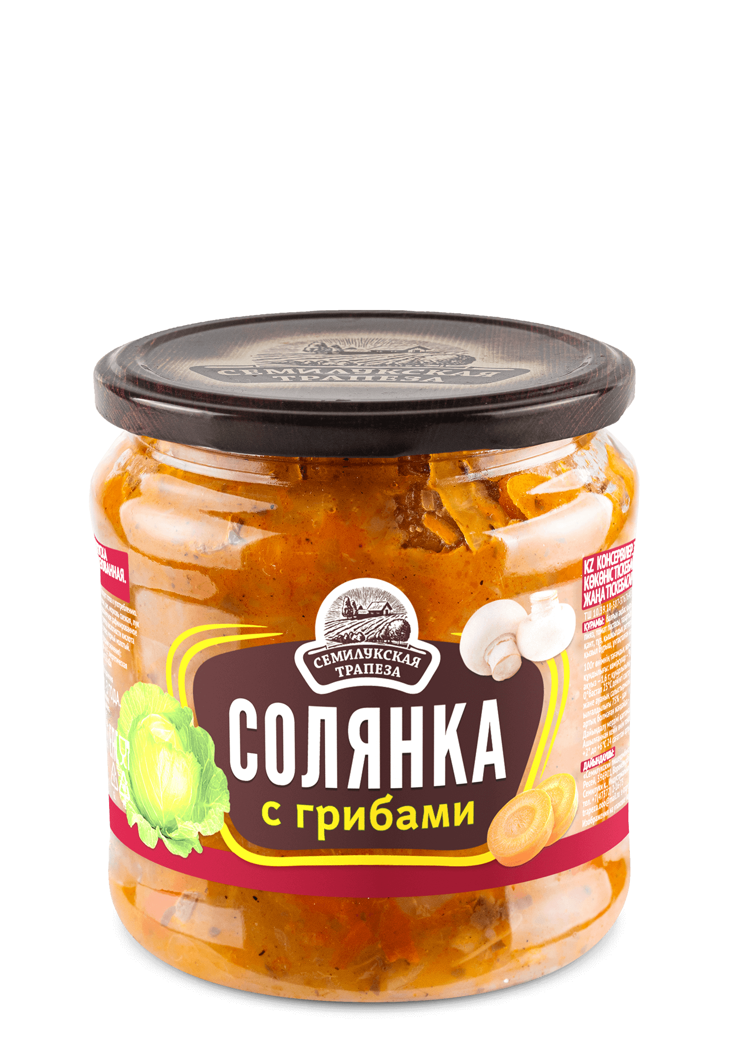 Все любят сытный наваристый суп под названием солянка! Но у современных хозяек не всегда хватает времени для его приготовления. Компания «Семилукская трапеза» с заботой о своих покупателях включила в свой ассортимент закуску — «Солянка». В её приготовлении используются только отборные овощи, отсутствуют красители и консерванты. Остаётся добавить лишь мясной бульон, и отменное первое блюдо готово!