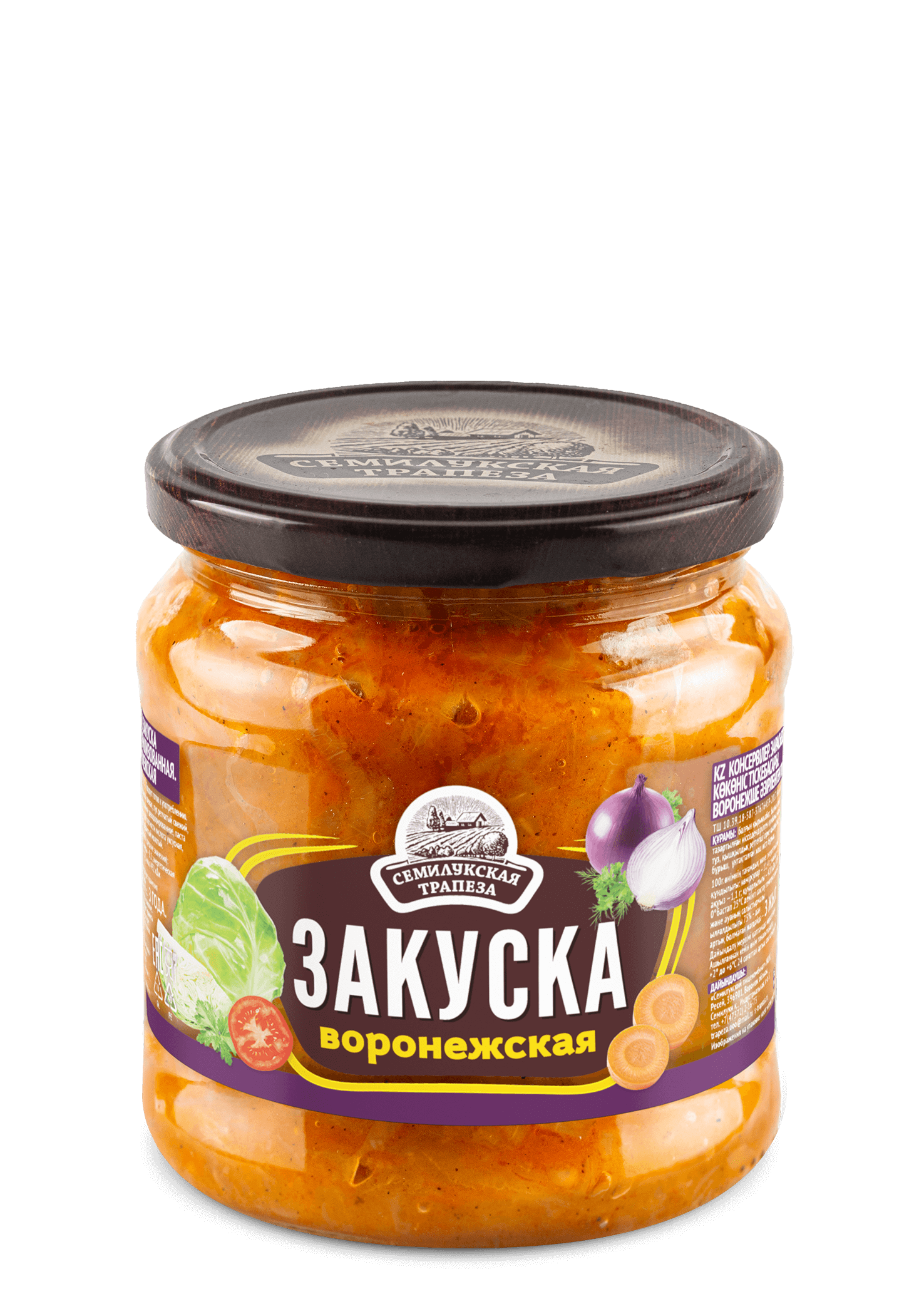 Идеальное сочетание любимых овощей, собранных на плодородных полях черноземья, сумеют покорить сердца самых настоящих гурманов. Закуска «Воронежская» марки «Семилукская трапеза» имеет отменный вкус и аромат, прекрасно подходит к мясным блюдам или как самостоятельный овощной гарнир.