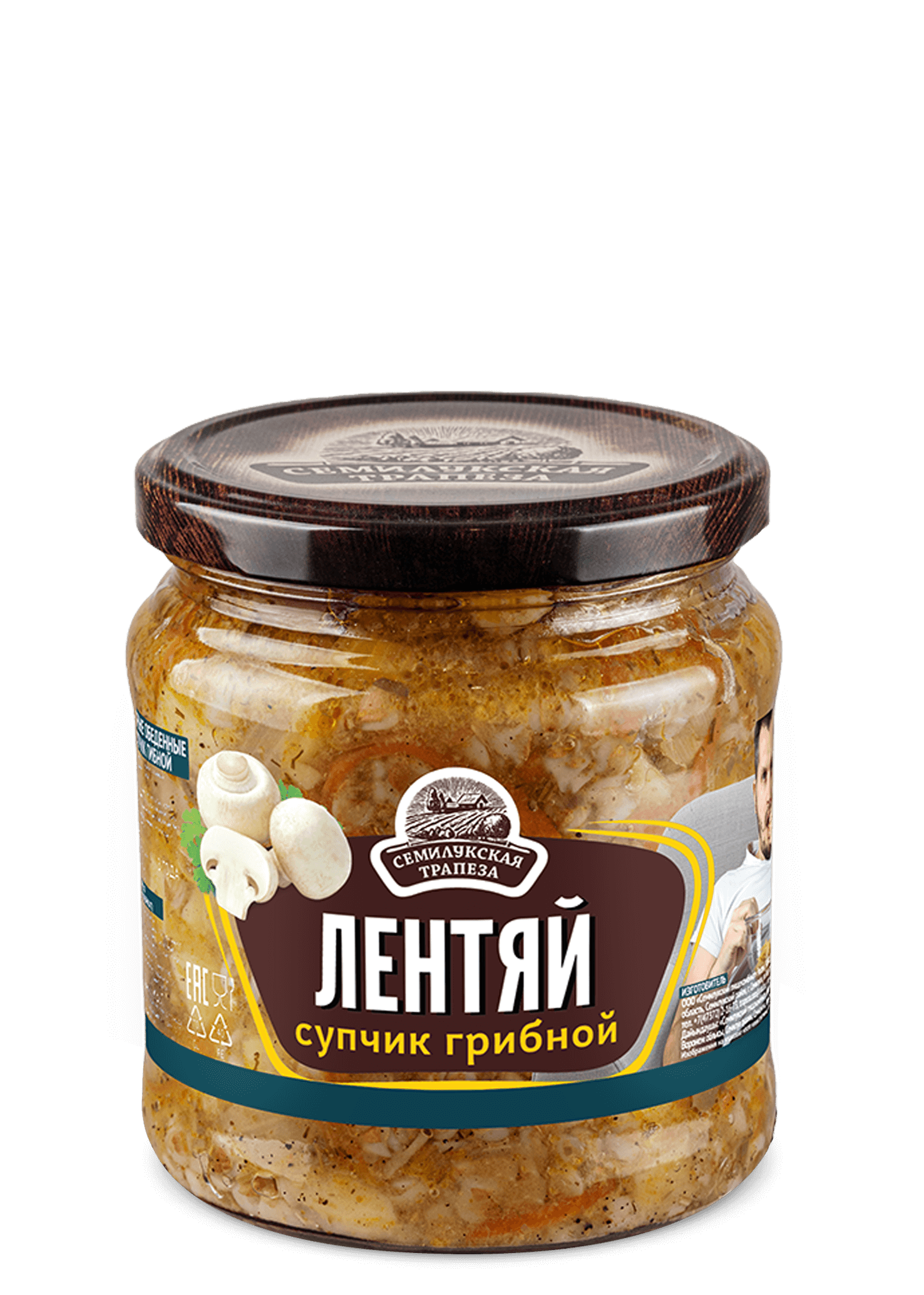 Состав: картофель, грибы шампиньоны, морковь, лук репчатый, крупа гречневая, масло подсолнечное рафинированное дезодорированное, соль ,сахар, сухое молоко цельное , укроп, перец черный молотый, лавровый лист.