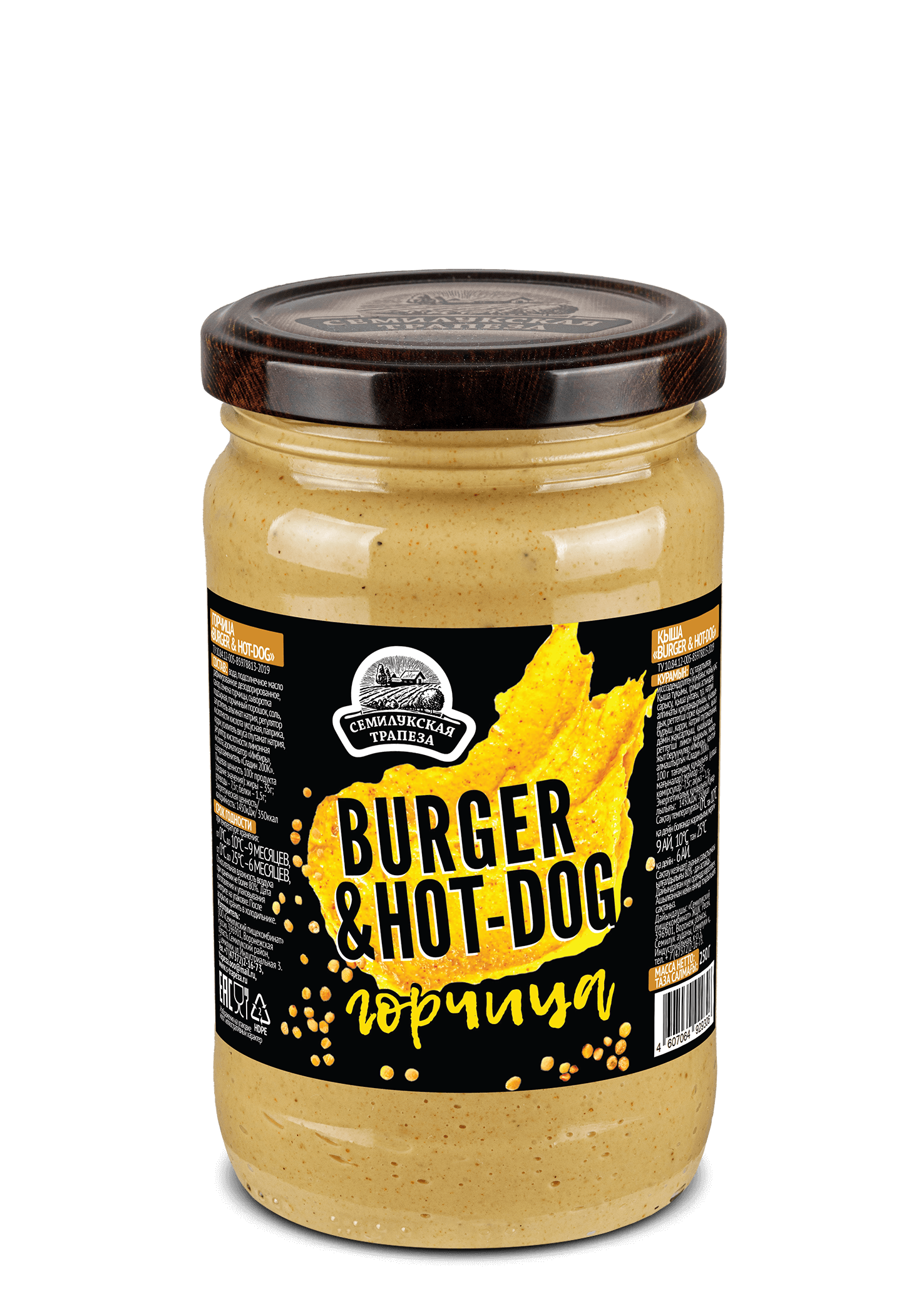 Горчица «BURGER & HOT-DOG» марки «Семилукская трапеза» идеальное решение для любителей терпкого вкуса. Натуральные зерна горчицы, карри и паприка в её составе придают приятную жгучесть и аппетитный аромат этому соусу. Солнечная горчица точно украсит любую закуску. Бургеры, хот-доги и даже традиционный холодец не возможно представить без этой заправки. А стильная упаковка Горчицы «BURGER & HOT-DOG» будет отлично смотреться на кухне каждой хозяйки.