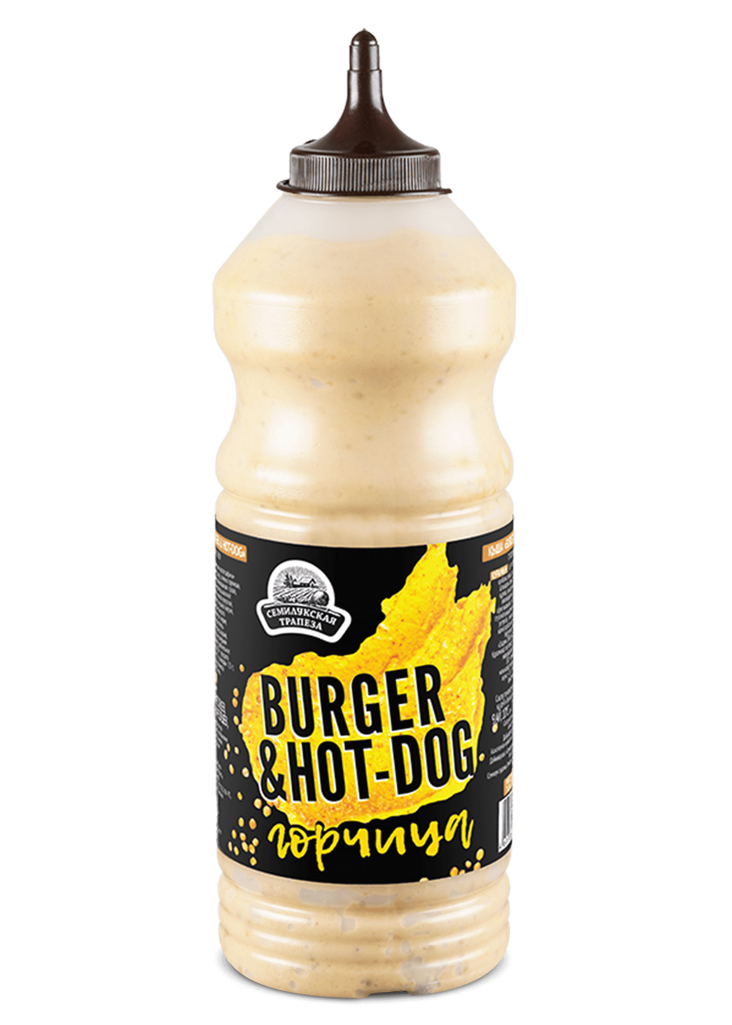 Горчица «BURGER & HOT-DOG» марки «Семилукская трапеза» идеальное решение для любителей терпкого вкуса. Натуральные зерна горчицы, карри и паприка в её составе придают приятную жгучесть и аппетитный аромат этому соусу. Солнечная горчица точно украсит любую закуску. Бургеры, хот-доги и даже традиционный холодец не возможно представить без этой заправки. А стильная упаковка Горчицы «BURGER & HOT-DOG» будет отлично смотреться на кухне каждой хозяйки.